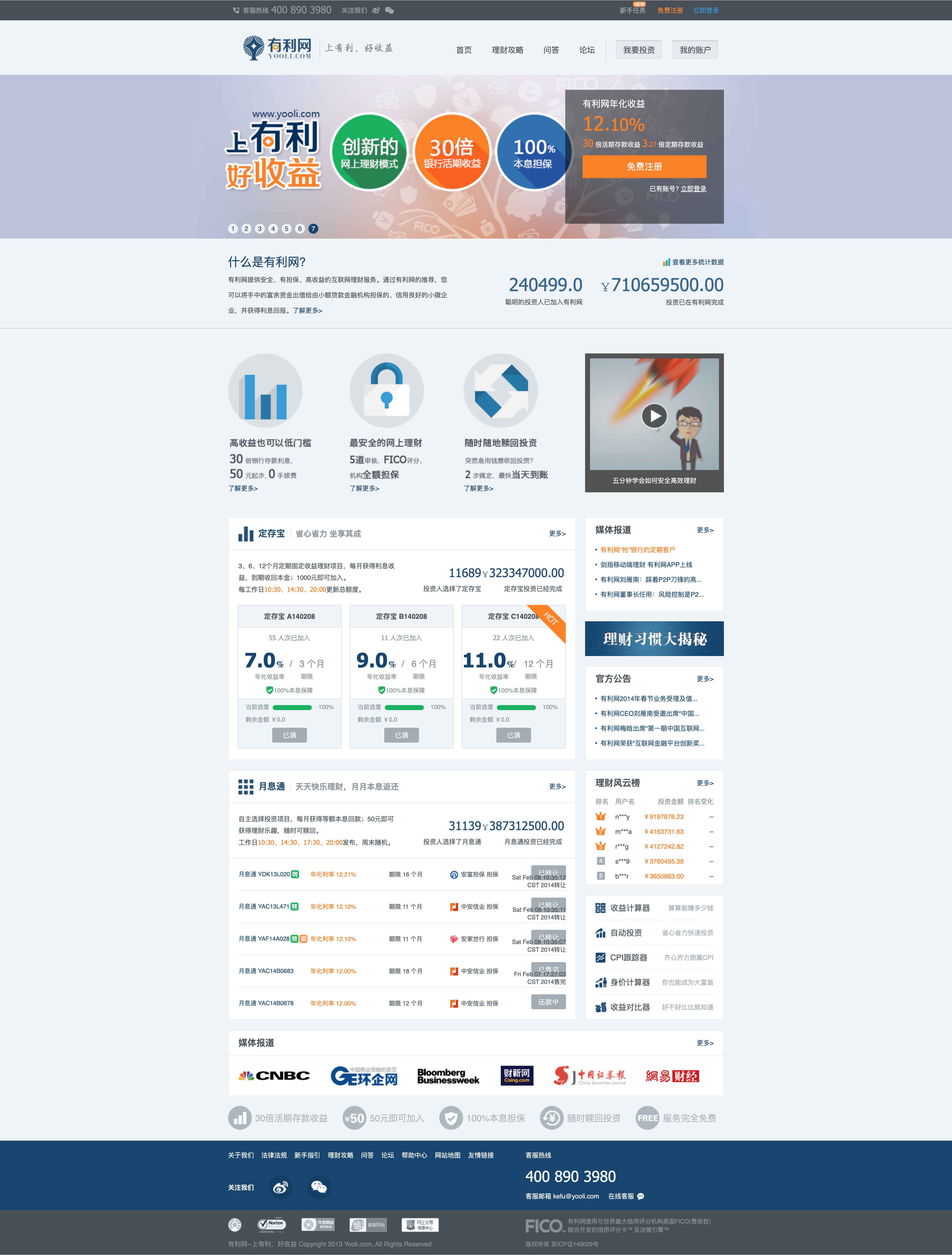 本证据为 2014 年期间“有利网”官网的页面截图,摘自互联网公开存档资料(Internet Archive)。