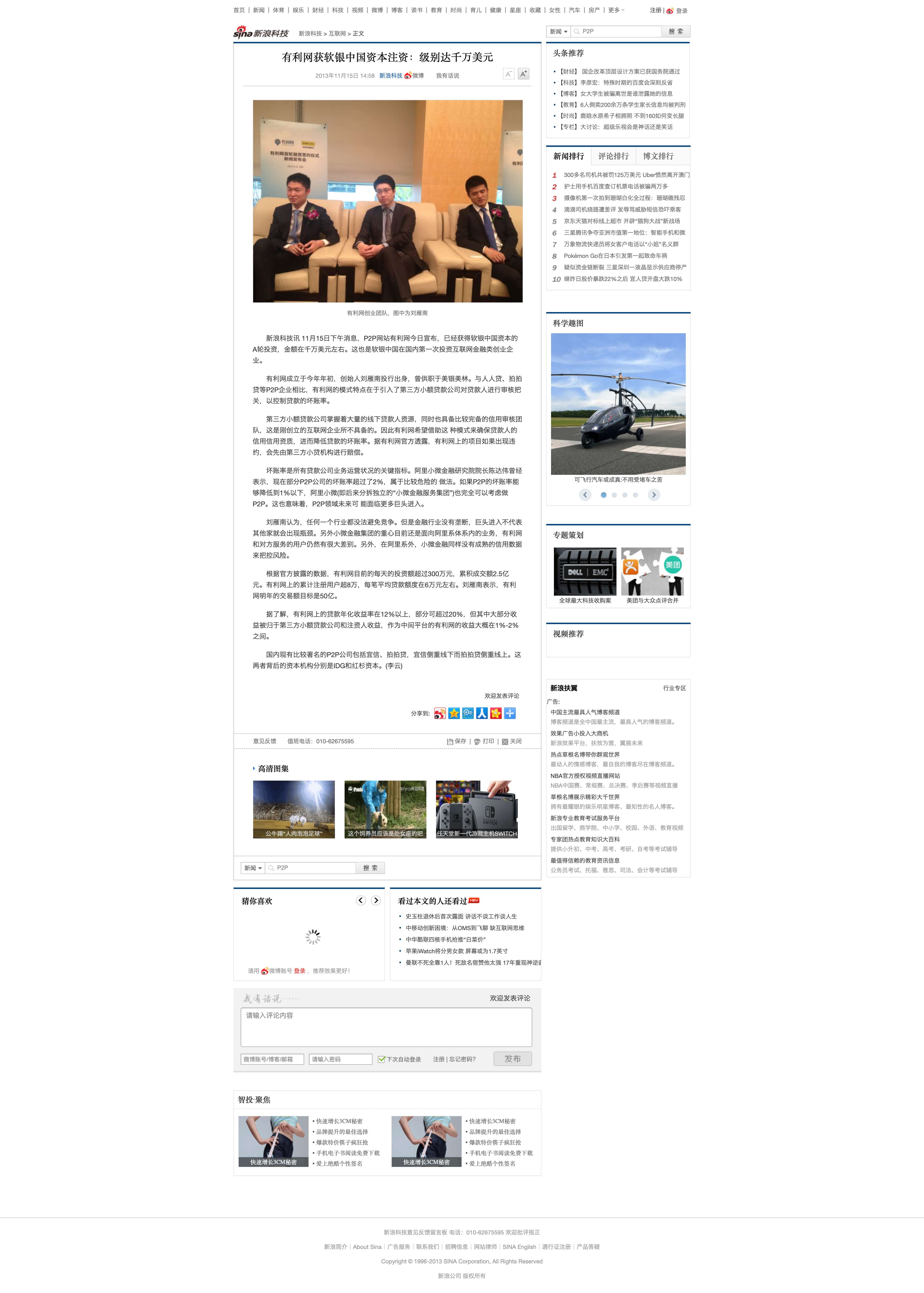 “11月15日下午消息,P2P网络有利网今日宣布,已经获得软银中国资本的A轮投资,金额在千万美元左右。这也是软银中国在国内第一次投资互联网金融类创业企业。”